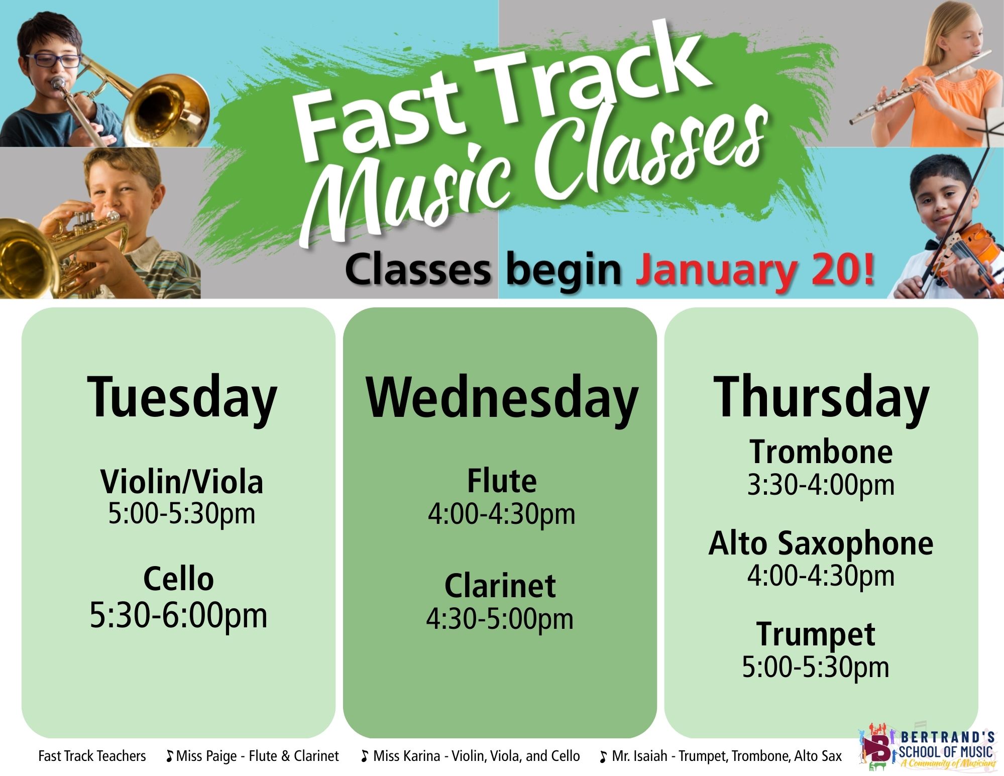 Our 30-minute weekly class is perfect for 4th and 5th graders who are starting or continuing school music. In a supportive small-group setting, students learn the basics, strengthen their skills, and stay excited to make music each week.